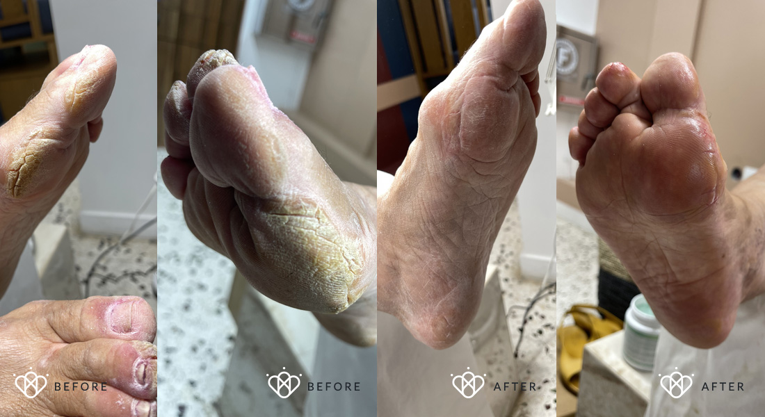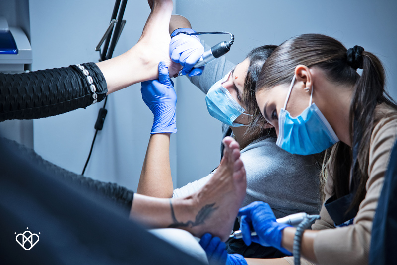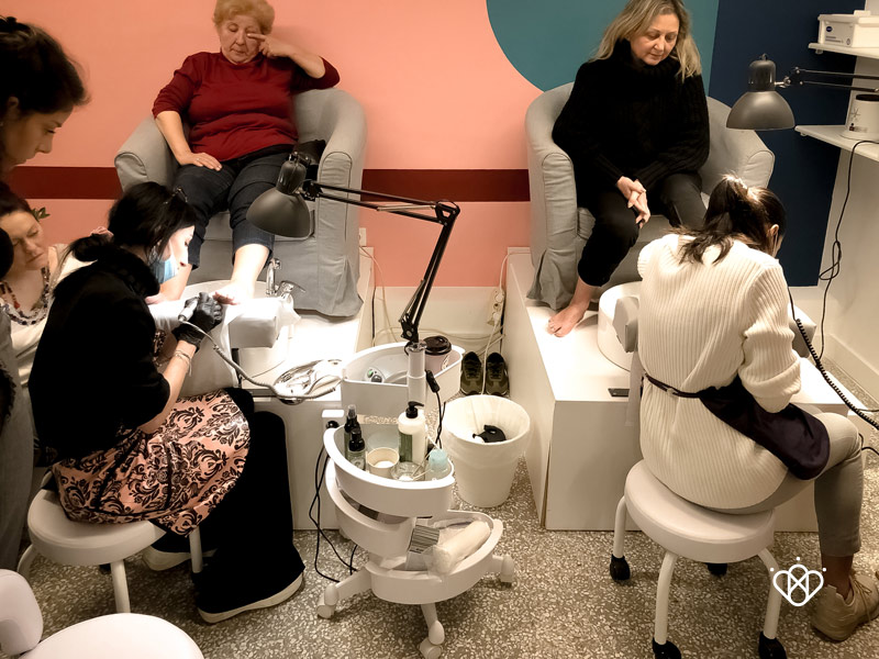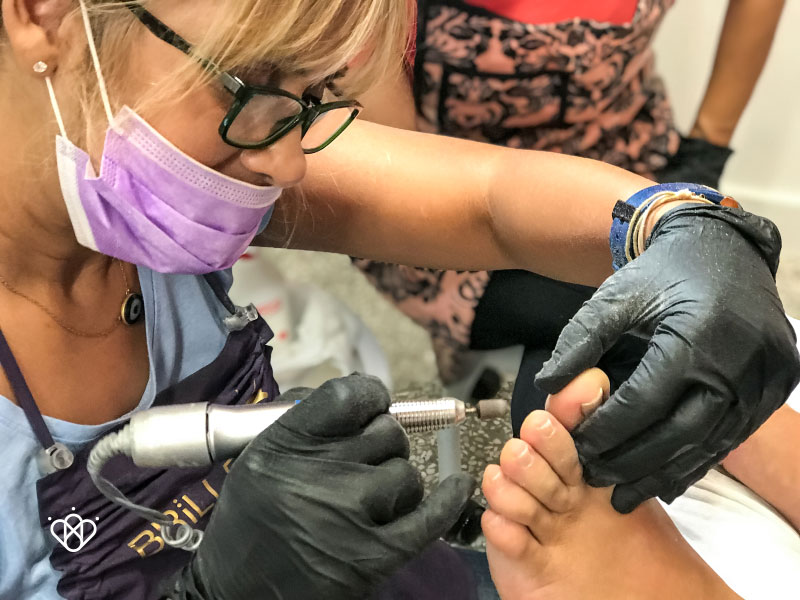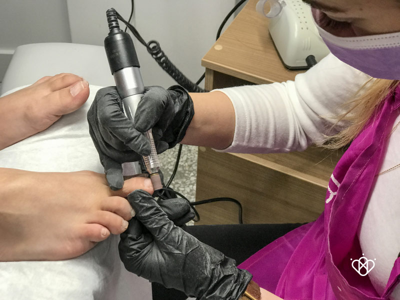 ένα σωστό και ασφαλή καθαρισμό των επωνυχίων με σωστό και βαθή βάψιμο, μέχρι που επεμβαίνουμε σαν τεχνίτριες άκρων και μέχρι που μας επιτρέπεται, μια σωστή περιποίηση των σκληρύνσεων, κάλων, ραγισμάτων